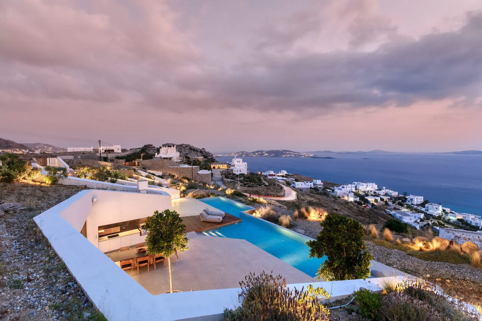 Built directly into a panoramic hillside above Tourlos, Villa Ophir is a modern architectural retreat designed to blur the line between nature and luxury. Elevated yet effortlessly connected, the villa offers immediate access to Mykonos Town, the new Marina, and the island’s most iconic beaches — all while maintaining complete privacy and serenity.